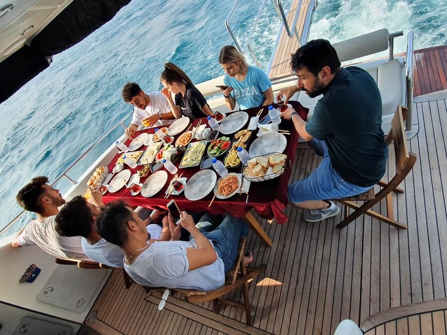 Örneğin; 2 saatlik yat kiralama (10.000 TL) ve 2 kişilik kahvaltı menüsü (3.000 TL) ile toplamda 13.000 TL'ye özel bir yatta kahvaltı planlayabilirsiniz. 📌 Ayrıca sayfanın sonundaki fiyat hesaplama aracını kullanarak kendi organizasyonunuzu hazırlayabilirsiniz. Bu araç sayesinde kişi sayısı, tur süresi, menü ve ekstra hizmet tercihlerini mouse ile kolayca işaretleyerek, hayalinizdeki paketi online olarak şekillendirebilirsiniz.